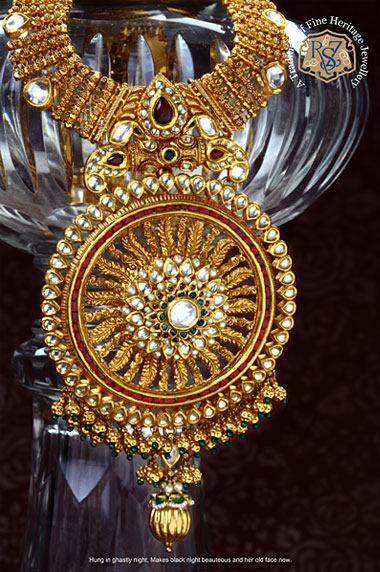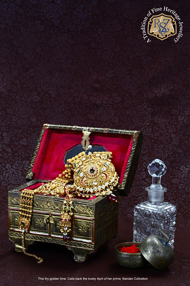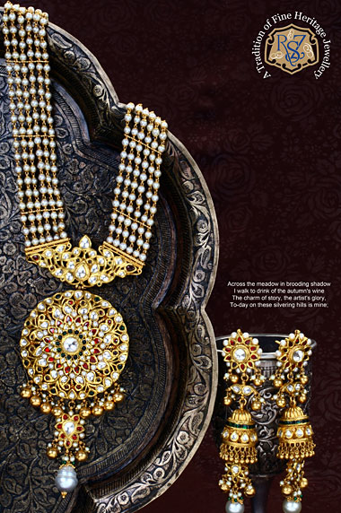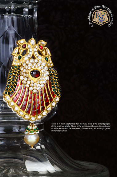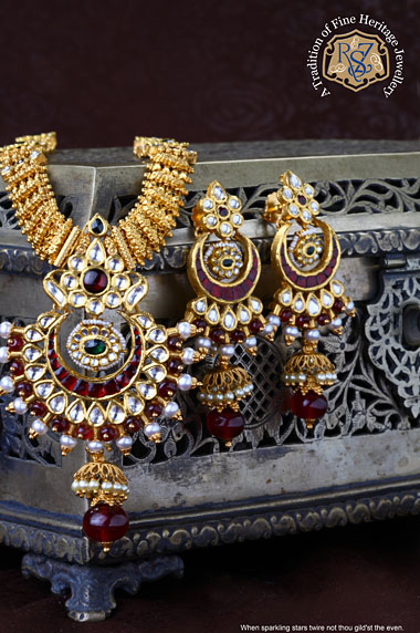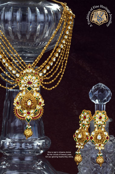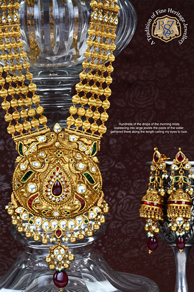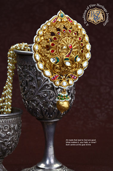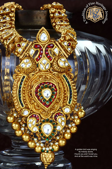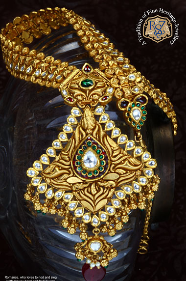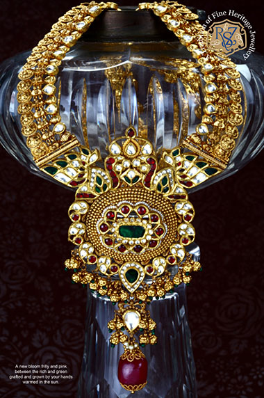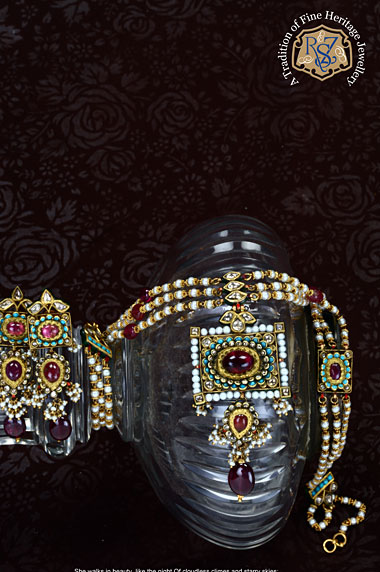 The Heritage collection is manufactured at Bikaner and Ahmedabad manufacturing units. Heritage collection is a combination of 22Kt Gold, Kundan/Velandi/Jadtar, Enamelling, Precious & Semi precious stones.