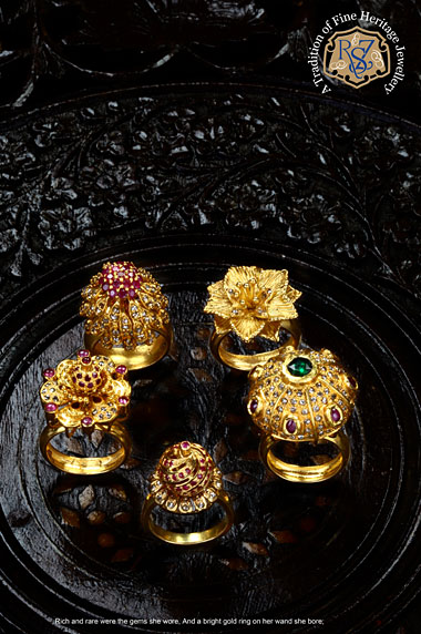 Heritage collection consists of women’s jewellery like Necklace, Earrings, Pendants, Rings, Bangles, Mang Tikka, Kada’s, Zhanjhri’s, Bangles, Bracelets, Broaches, Watches and Wedding Sets.